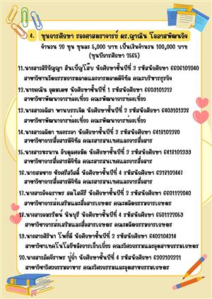 โดยให้ผู้ที่ได้รับทุนการศึกษา นำเอกสารดังต่อไปนี้